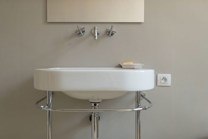 Cette demeure de charme est située dans un hameau dont l’histoire est étroitement liée à la présence de l’eau ; l’emplacement est choisi au début du XX ème siècle pour l’implantation d’une fabrique de papier qui utilise la force du courant. Récemment devenue une résidence familiale pour la moitié de l’année, notre travail consiste à rénover les salles d’eau et salles de bain de la maison.